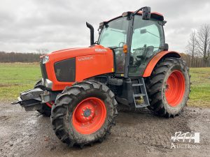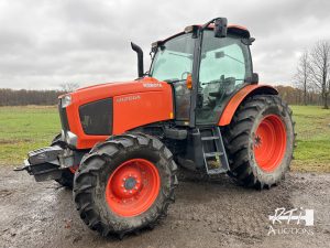 1 2016 Kubota M126GX tractor, 4WD, Deluxe cab, buddy seat, heat, AC, external 3pt controls, 2 remotes, front weights sunroof, suspension seat, ONLY 113 hours. Virtually new tractor, in excellent condition. SN 51840