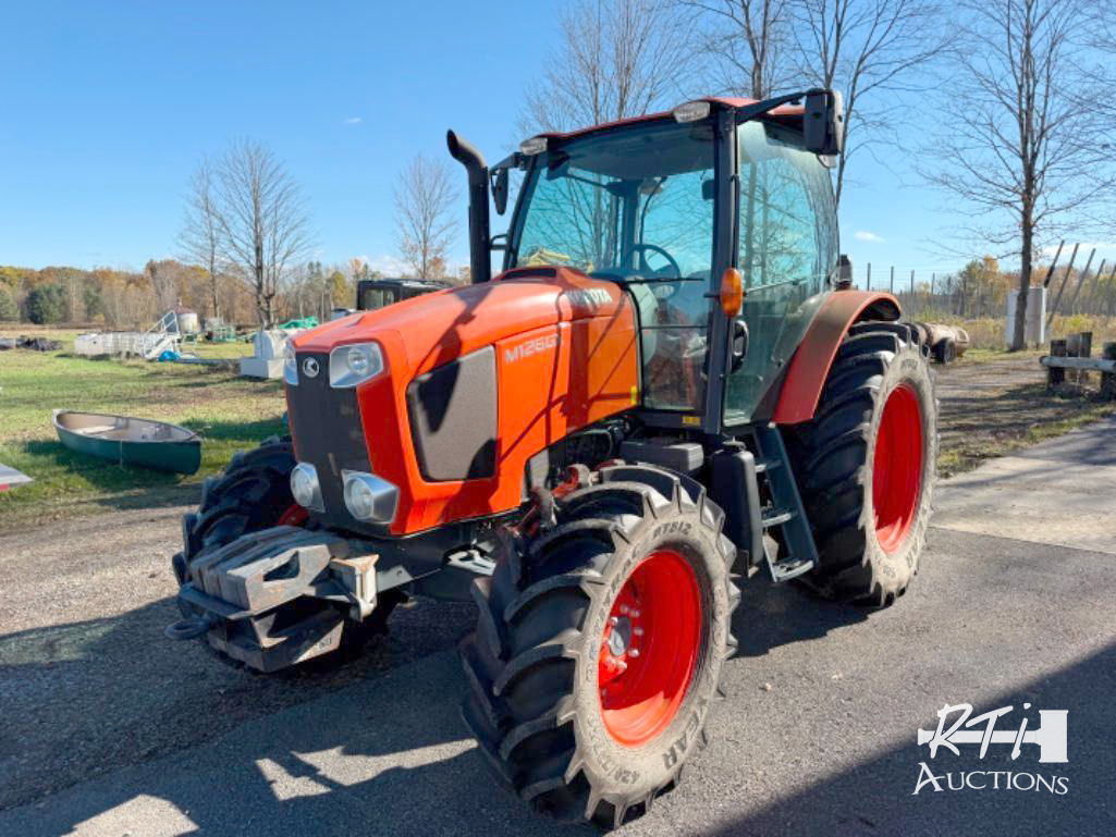 1 2016 Kubota M126GX tractor, 4WD, Deluxe cab, buddy seat, heat, AC, external 3pt controls, 2 remotes, front weights sunroof, suspension seat, ONLY 113 hours. Virtually new tractor, in excellent condition. SN 51840