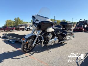 1077 | 2010 Harley Davidson police motorcycle, 6 speed transmission, rear storage compartments, VIN: 1HD1FMM1XAB619903- Municipal, Town of Greece Police |