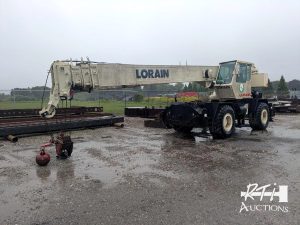 61 | Lorain LRT 230E Rough Terrain Crane. Diesel. Range shift transmission with 6 forward and 6 reverse speeds. 4WD. 2WD/4WD/Crab Steer. Capacity 30T. Main Boom 30-94Ft. 26Ft Jib. Unit is currently in yard use. There are some hydraulic leaks that do not hinder functions. Seller welcomes inspection by serious bidders. Bill of Sale. Item is located in Eden, NY and SELLS AS IS WHERE IS. Bidders are responsible to act on their own inspection prior to bidding. Call 716-341-3204 for more information. |