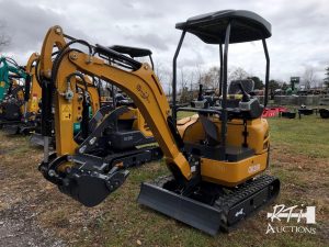 | 41 | CFG Industrial H2R mini excavator with 16 in digging bucket manual thumb, backfill blade, canopy and 15 hp gas engine. *Manufacturers Direct Item (MDI) This item is new and has come directly from the manufacturer. By purchasing it, the buyer acknowledges that there is no dealer support for its long-term use. RTI Auctions CANNOT provide parts, service advice or any additional production information. Item is located at RTI Auctions, Geneseo, NY. All items sell as is where is, bidders are responsible for their own inspection prior to bidding. There is open inspection Monday – Friday from 8am – 5pm and Saturday from 8am – 12pm. If you have questions, call the RTI Auctions office at 585-243-1563. – D33 |