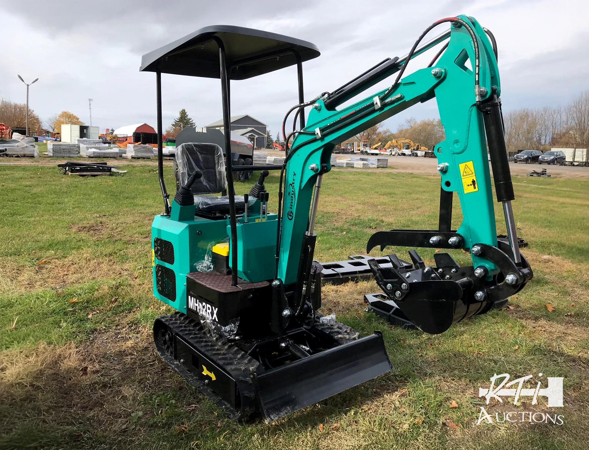 | 47 | CFG Industrial MH12RX mini excavator with 16 in digging bucket manual thumb, backfill blade, canopy and 15 hp gas engine. *Manufacturers Direct Item (MDI) This item is new and has come directly from the manufacturer. By purchasing it, the buyer acknowledges that there is no dealer support for its long-term use. RTI Auctions CANNOT provide parts, service advice or any additional production information. Item is located at RTI Auctions, Geneseo, NY. All items sell as is where is, bidders are responsible for their own inspection prior to bidding. There is open inspection Monday – Friday from 8am – 5pm and Saturday from 8am – 12pm. If you have questions, call the RTI Auctions office at 585-243-1563. – D23 |